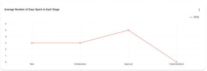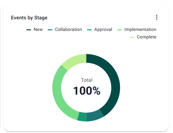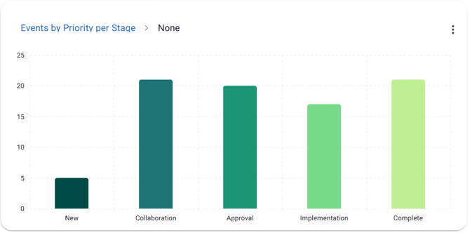 - This chart will display the number of days your company's Events are spending in each stage of the Event workflow. By hovering over the respective bar, the data will be formatted as [Stage: Number of Days.]