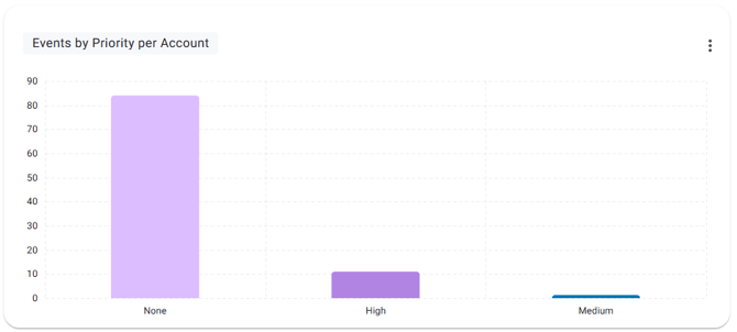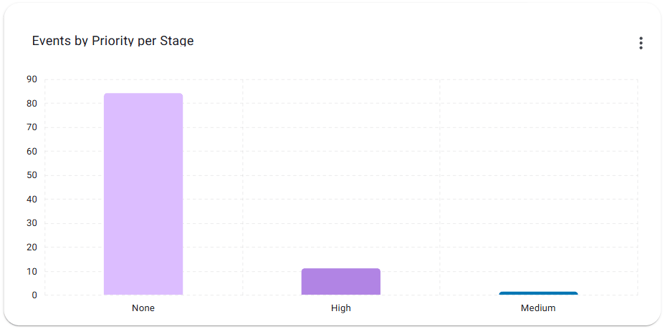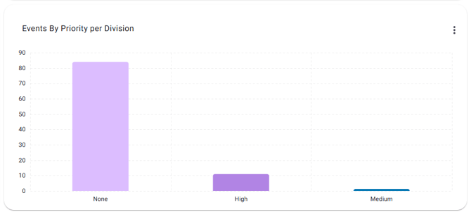 - This chart displays the total number of Events per Priority. Hovering over a Priority will display the data in the format: [Priority: Number of Events].