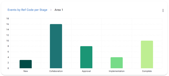 Drill-down view: Click a Ref Code bar to view Events grouped by Stage for the selected Ref Code: