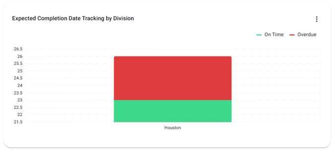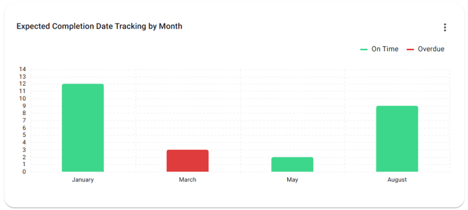 Default view: Displays the total number of records per month, categorized as On Time or Overdue based on the Expected Completion Date: