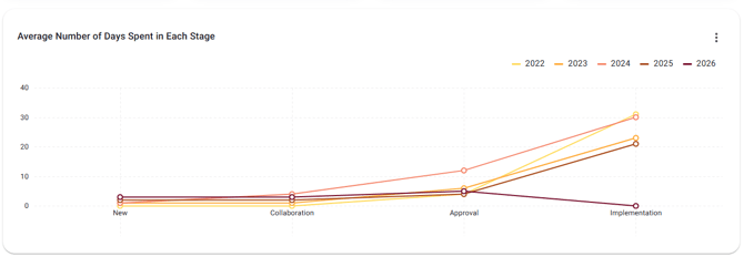 The number of trend lines displayed depends on the Date filter selection. When multiple years are selected, the chart displays a separate line for each year included in the filter, up to a maximum of five years.