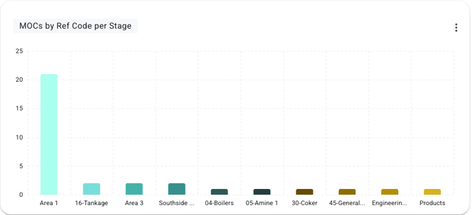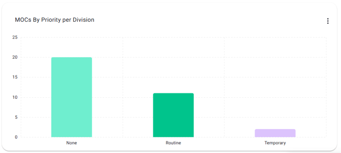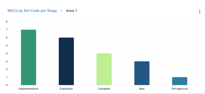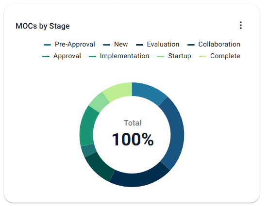 - Past Completion Date: Number of MOCs that are overdue and have gone past the expected completion date listed on the respective MOC details.